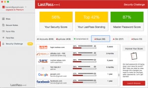 LastPass will offer to suck in and audit all your passwords. My score is not great because, like everyone else, before LastPass, I used the same password for most sites before I started using a password manager. LastPass passwords are encrypted using a master password, which for me is a quasi-random list of words which I don’t use for any other purpose.