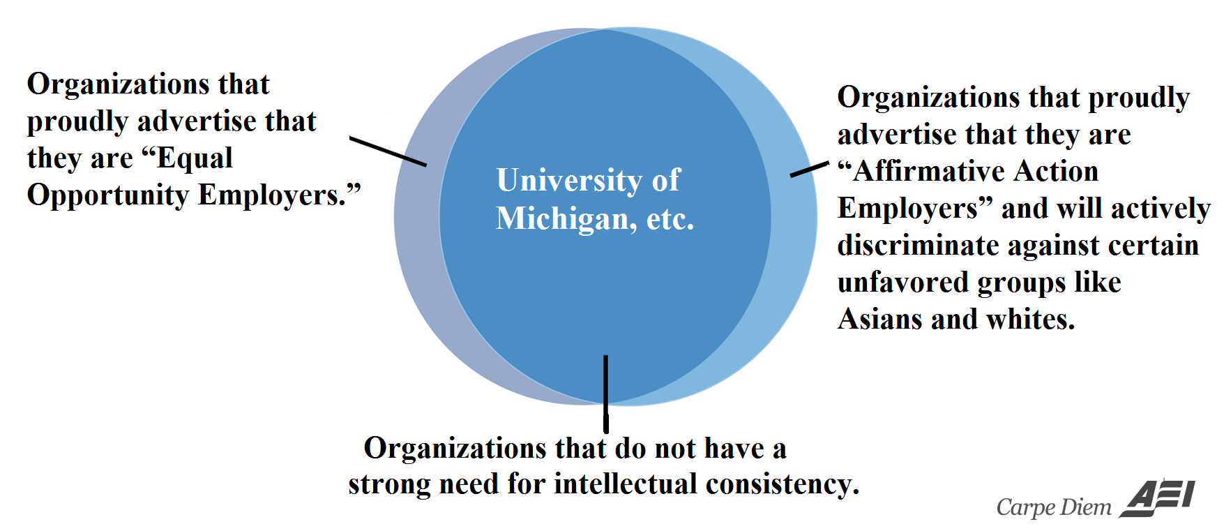 - Venn Diagram X (above). Employers who proudly advertise that they are both Equal Opportunity/Affirmative Action employers. Don’t you have to make a choice?