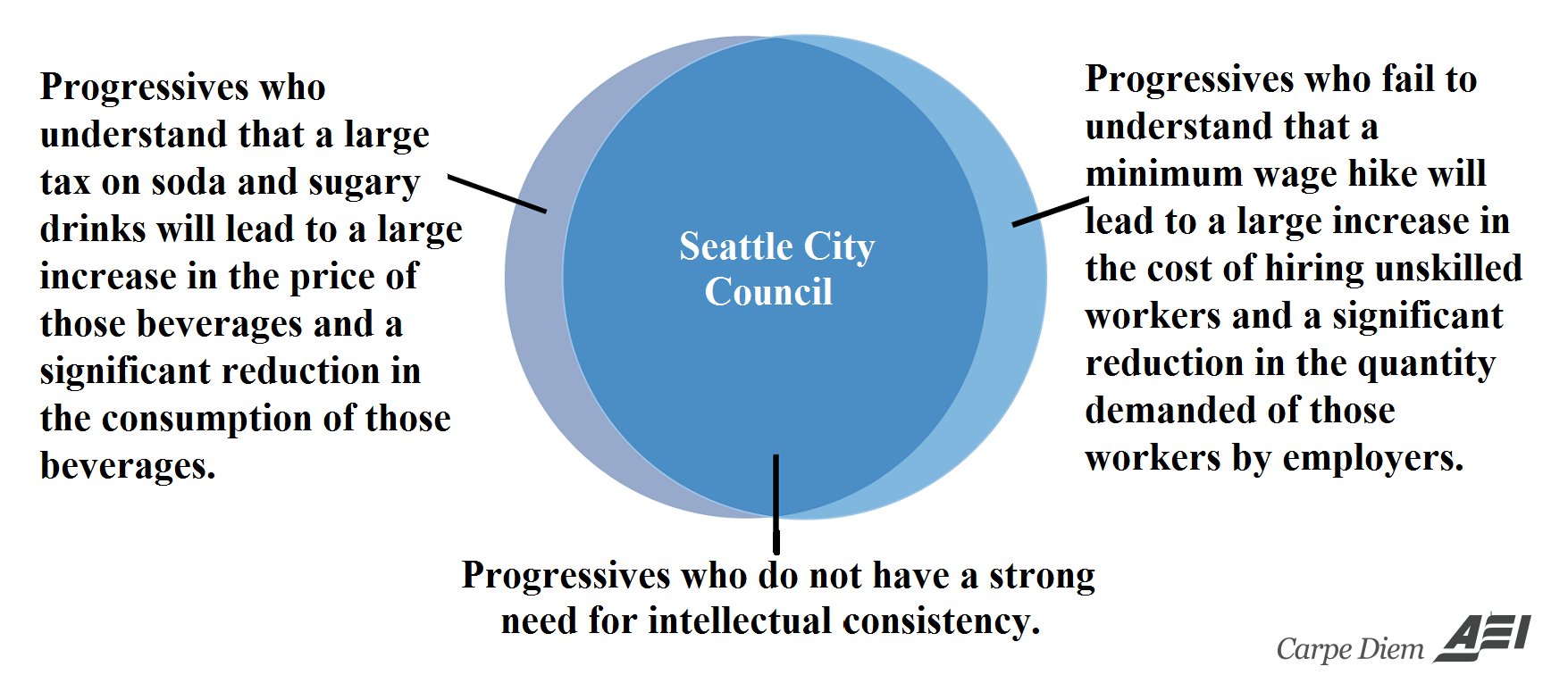 - Venn Diagram V (above). If artificially higher soda prices reduce consumption, wouldn’t higher minimum wages do the same?