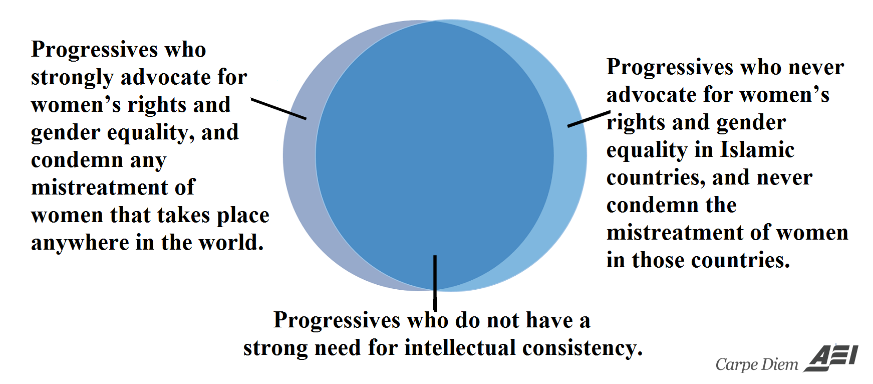 - Venn Diagram VII (above). Islam gets a pass from gender activists, feminists, and progressives?