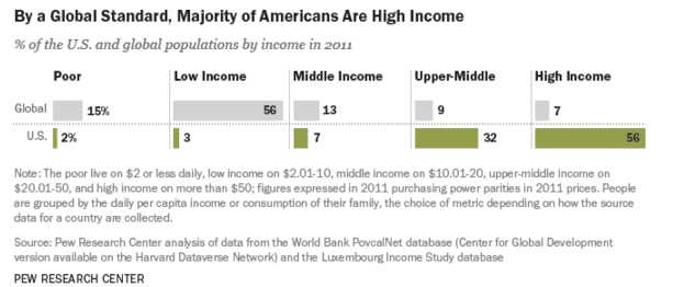 Pew has been making headlines with its recent study [PDF] on US income distributions, alarmingly titled “The American Middle Class Is Losing Ground.”