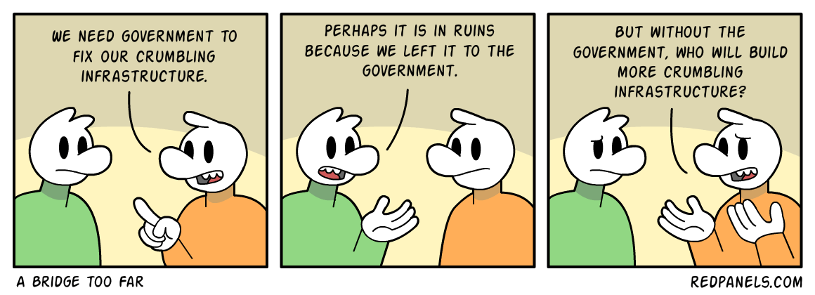 P.S. Whoever does the “Redpanels” cartoons is very clever. I’ve already shared ones on the minimum wage, universal basic income, and Keynesian economics. Now, here’s one on federal infrastructure.