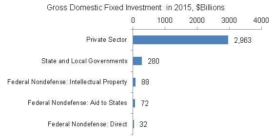 Hillary Clinton says that “we are dramatically underinvesting” in infrastructure and she promises a large increase in federal spending. Donald Trump is promising to spend twice as much as Clinton. …But more federal spending is the wrong way to go. …let’s look at some data. There is no hard definition of “infrastructure,” but one broad measure is gross fixed investment in the BEA national accounts. …The first thing to note is that private investment at about $3 trillion was six times larger than combined federal, state, and local government nondefense investment of $472 billion. Private investment in pipelines, broadband, refineries, factories, cell towers, and other items greatly exceeds government investment in schools, highways, prisons, and the like. …if policymakers want to boost infrastructure spending, they should reduce barriers to private investment.