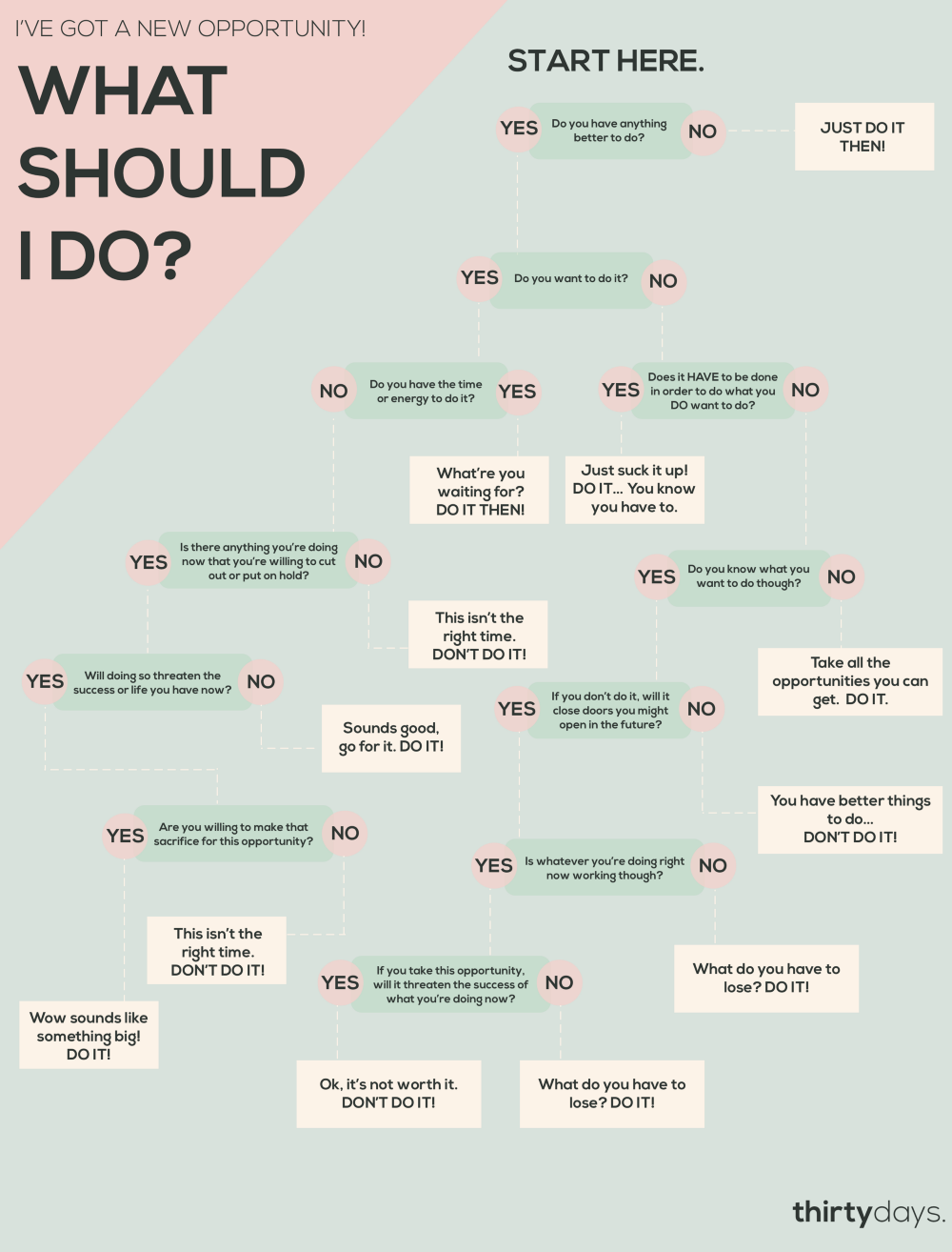 The decision tree below will help you in those times when you’re not sure if you should take on something new. But, before that, here are 4 principles to deciding if an opportunity is worth your time:
