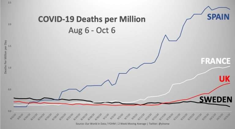It’s true there was concern around a slight uptick in cases that began in mid-September, but the increase is well below other European nations, which has resulted in fewer COVID-19 related deaths.