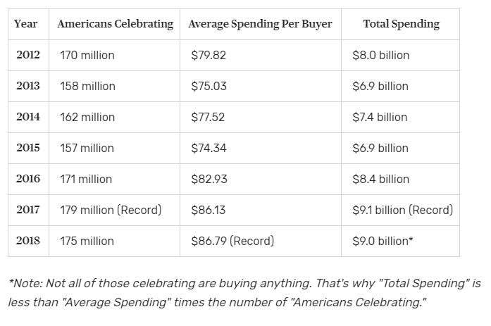 - Americans are projected to spend some $9 billion total on Halloween in 2018, according to the National Retail Federation. That’s a couple billion dollars more than was spent on federal elections in 2016.