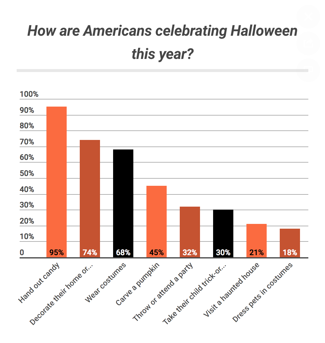 - An estimated 95 percent of Americans plan on buying candy during the Halloween season, spending a total of $2.6 billion.