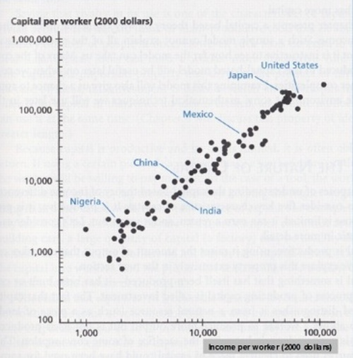 To appreciate the critical role that capital investment plays in the economy, take a look at the graph below. It’s taken from a textbook called Economic Growth by David Weil. The data are admittedly a little old, but the overall point is still crystal clear.