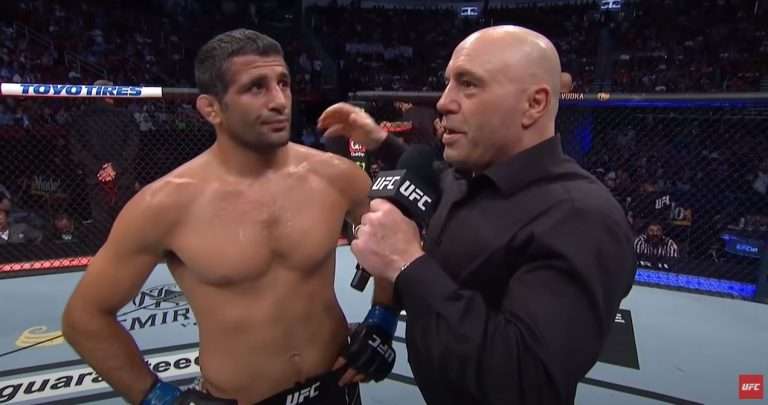 Speaking to podcaster Joe Rogan after the fight, the Iranian-born American mixed martial artist dedicated his victory to victims of communism around the world.