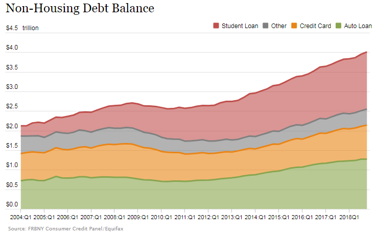 U.S. government-sponsored student loan debt has become an escalating problem for the finances of many American households. The latest household debt report from the New York branch of the Federal Reserve indicates that Americans collectively owed $1.46 trillion in student loans at the end of 2018, more than any other category of non-housing related debt.