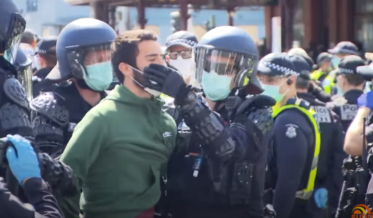 At time of writing, the state of Victoria is facing perhaps the developed world’s most oppressive and mean-spirited overreaction from the government in response the COVID virus. Police in riot gear are forcefully clearing out farmers markets, harassing elderly women for sitting on a park bench, snatching infants in strollers from fathers, and fining people for catching a bus without a ‘work permit.’ In the modern town of Ballarat, a pregnant woman in her pajamas is handcuffed and arrested in her own home over a Facebook post promoting a peaceful protest, in a town not even under the severest level of lockdown. She was charged with ‘incitement’ similar to a terrorism charge, and could face 15 years in jail. People are being threatened with fines for merely ‘liking’ a Facebook post.