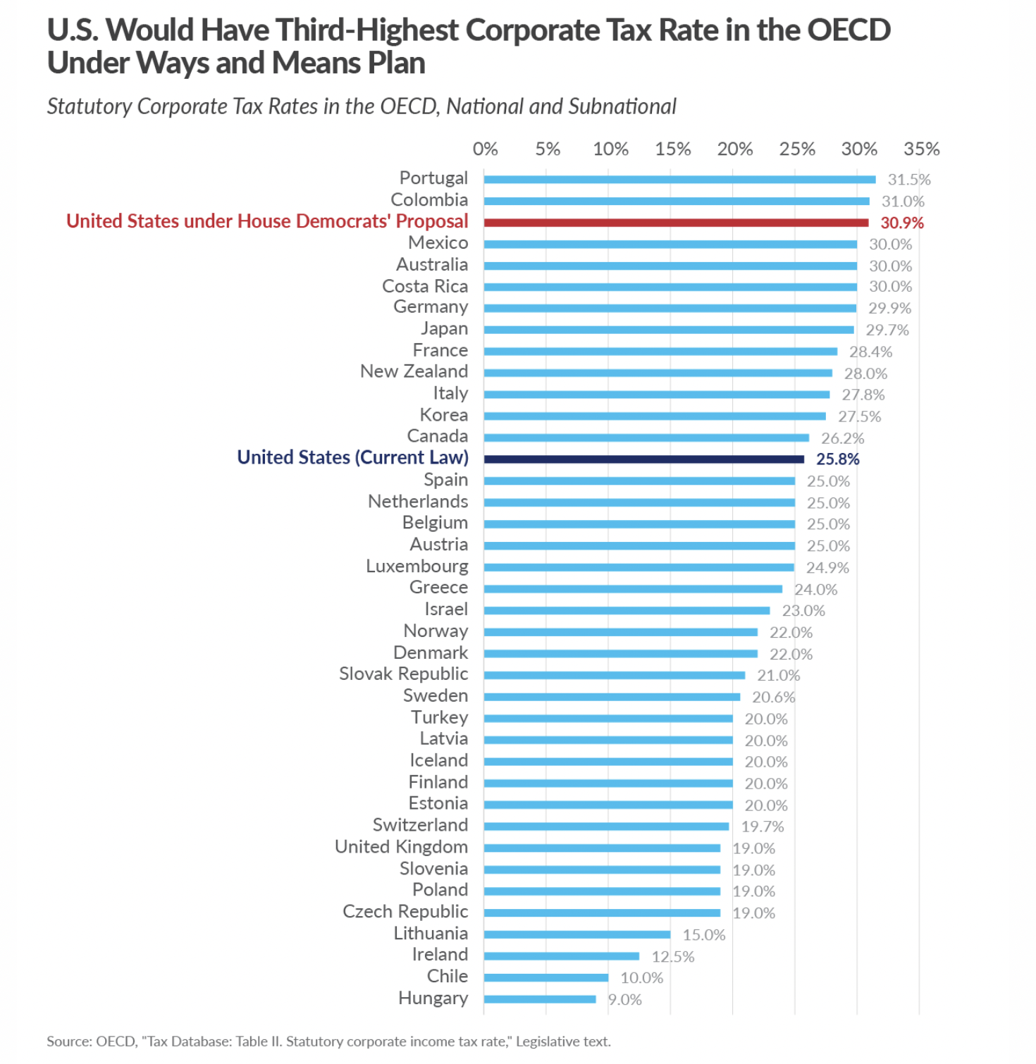 “Returning to near the top of the OECD in corporate tax rates would… disincentivize investment and encourage firms to shift profits and locate elsewhere, resulting in fewer job opportunities for Americans and less tax revenue for the U.S. government,” the analysis explains.
