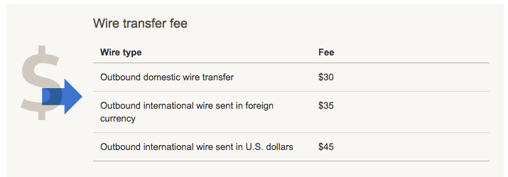 As the business gets off the ground, Priya isn’t always in India. When needed, she simply makes an order with her manufacturer and conducts a wire transfer to their bank. Her bank, however, has the following fees for moving money: