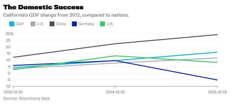“California is the chief reason America is the only developed economy to achieve record GDP growth since the financial crisis of 2008 and ensuing global recession,” Bloomberg reported last year. “The capitalist juggernaut that is California helps explain why the state’s per capita income increased 9.5 percent since 2015, the most of any state and the most since 2012, according to data compiled by Bloomberg.”