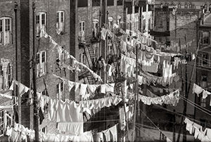 Those women who are leaning out their windows to hang out the wash may look quaint now, but they had been working at this task all day. And they would do it again the following week. And every single week after that. And those clotheslines? They may make a pretty picture in sunny weather, but picture a cold and rainy day, with all that wet laundry hanging in the tiny kitchen of your walk-up apartment in New York.
