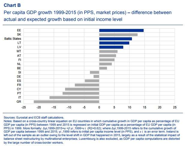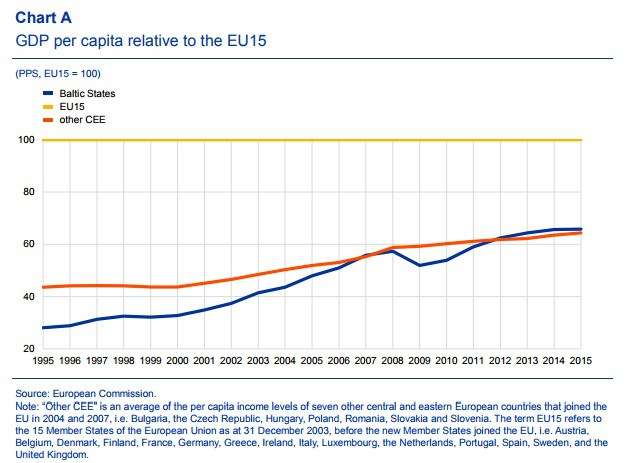The ECB report also measured how fast the Baltic nations have grown compared to theory.