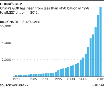 As a result, China’s GDP increased from less than $150 billion in 1978 to $8.2 trillion in 2012, lifting hundreds of millions of Chinese citizens out of extreme poverty.