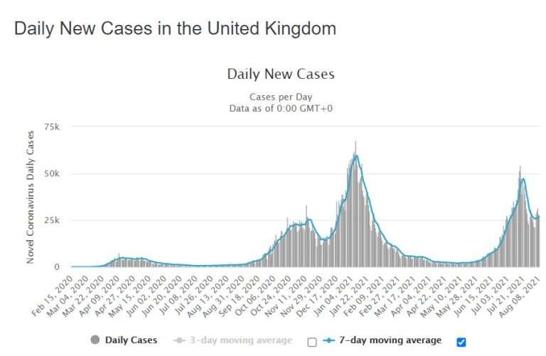 Three weeks after 'Freedom Day,' COVID cases in the United Kingdom continue to fall.