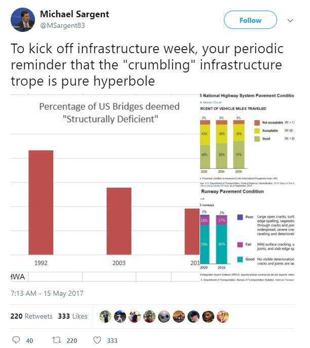 By the way, let’s also dismiss the notion that there’s some sort of infrastructure crisis.