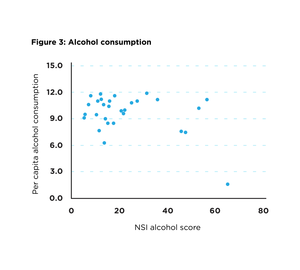 There is no correlation between alcohol control scores and lower rates of alcohol consumption (Figure 3).
