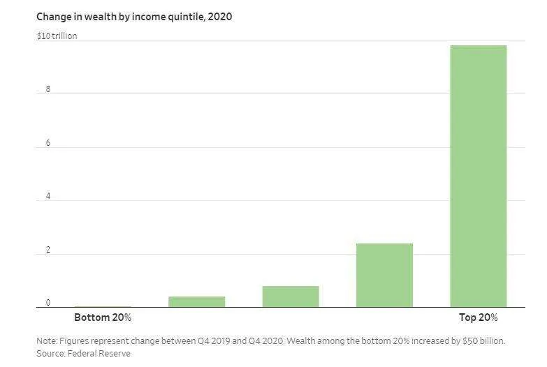 This new wealth was not evenly distributed, however. Nearly $10 trillion of it went to households in the top quintile. This is no coincidence.