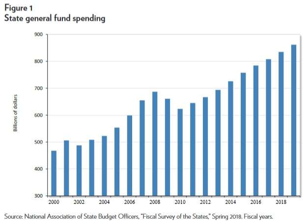 Here’s a chart that shows what has happened to state spending this century. What caught my eye is the boom-bust cycle of excessive spending growth when the economy is growing (and generating lots of revenue) and cutbacks during the downturn.