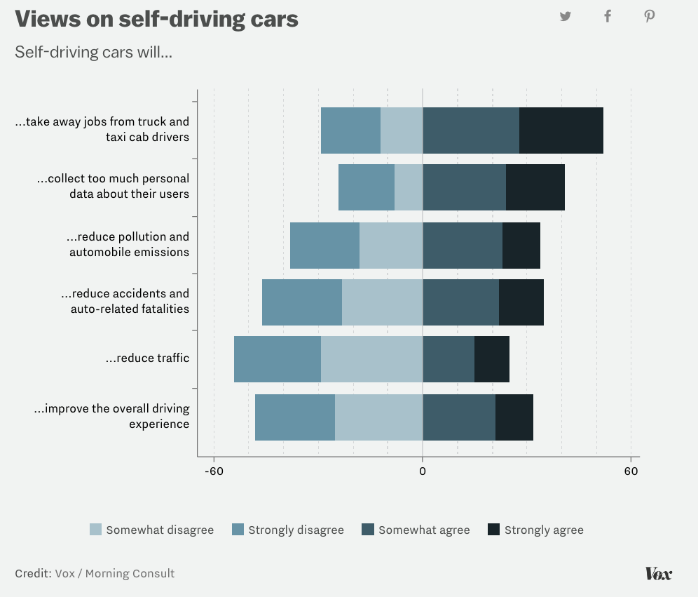As it turns out, this is precisely what the polls show about self-driving cars, which are making great progress around the country. The newest polls show that large numbers of people think that self-driving cars will not reduce accidents and will take away jobs from many people who drive for a living.