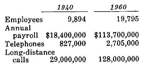 Compare the inexpensive pock et-size radio of today with its higher-priced and poorer-quality counterpart of 35 years ago. Or, consider the change in the price and quality of television sets from 1948 to 1964. The telephone service is a good illustration of an intensely auto mated industry. Compare these statistics from annual reports of the Ohio Bell Telephone Company: