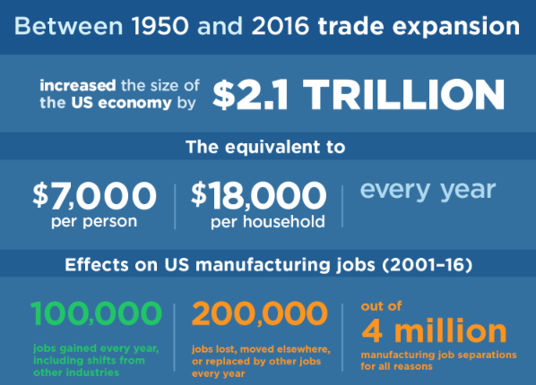 If we all are free to buy the cheapest products through trade in a global market without tariffs or other distortions, consumers will reap the rewards. Our productive resources will naturally flow to our strongest, most skilled economic areas while “outsourcing” others to countries more efficient in a given field. As economist Gregory Mankiw put it, “Americans should work in those industries in which we have an advantage compared with other nations, and we should import from abroad those goods that can be produced more cheaply there.”