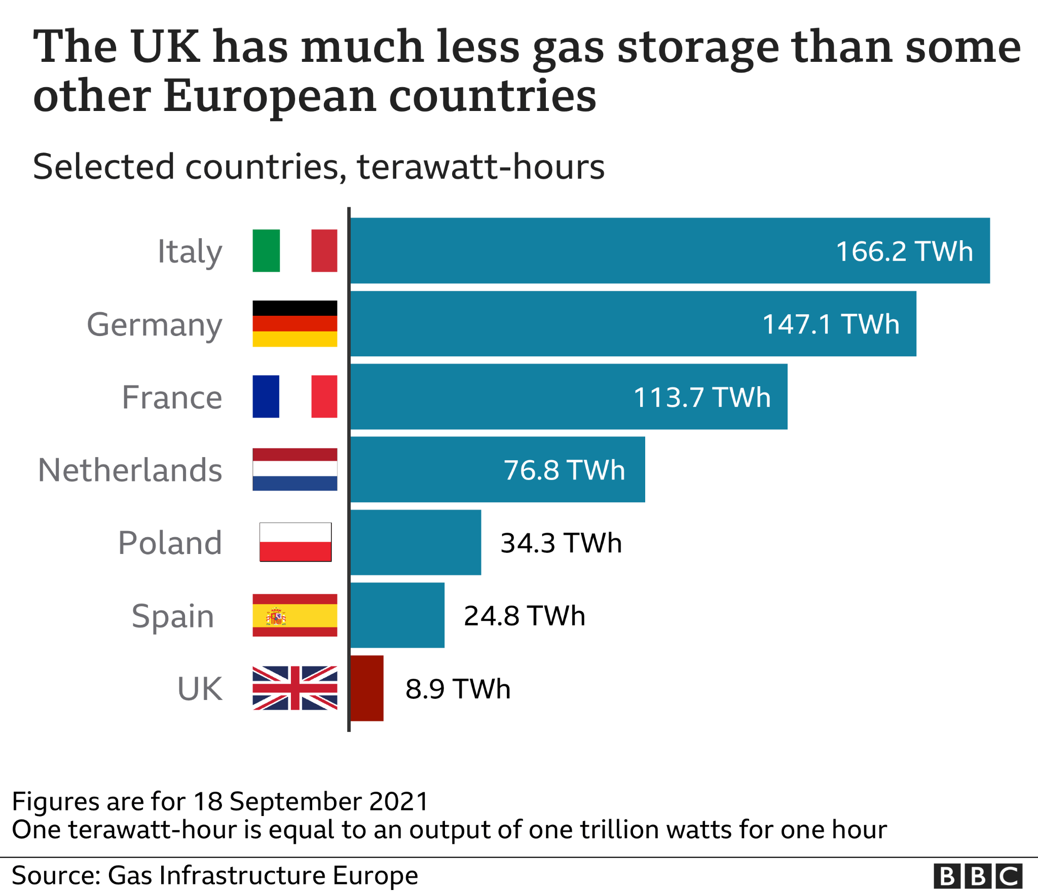 One of the reasons for Britain’s low storage capacity is that a storage facility called Rough, which used to provide a significant percentage of the UKs natural gas storage, was decommissioned in 2017 as a result of age-related deterioration.