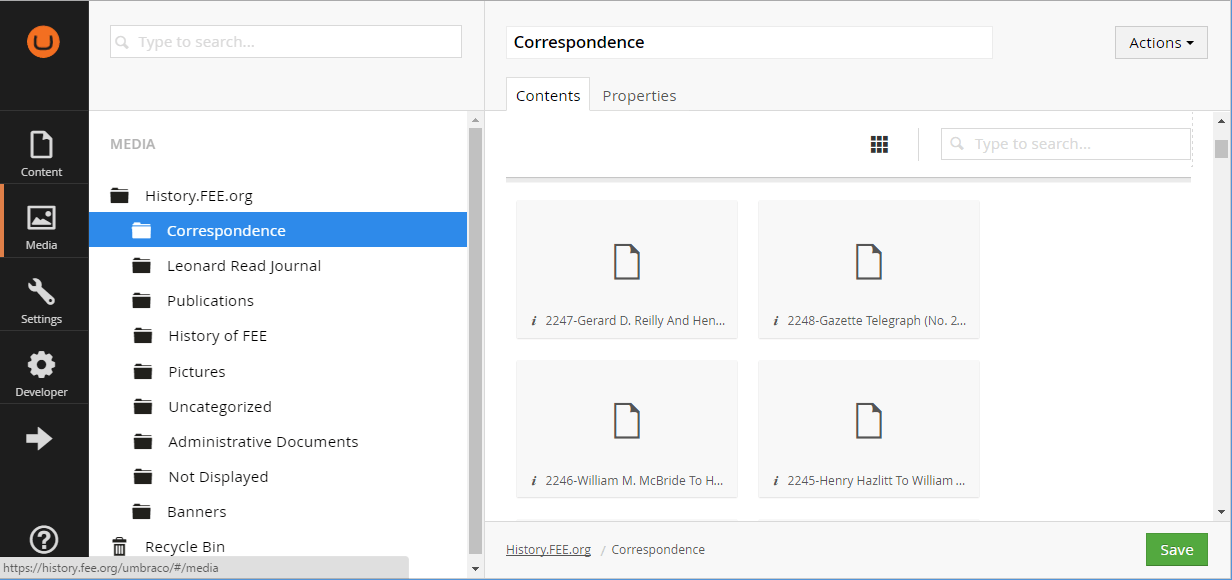 To perform the migration, we wrote a recursive script which would process folders and their contents and recreate the folder structure of the media folder as Umbraco content nodes.