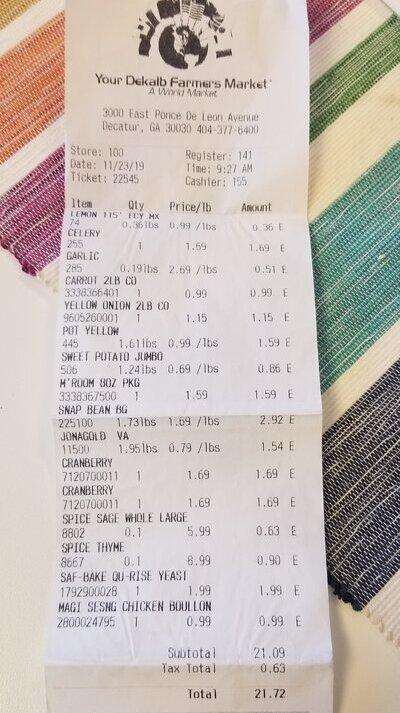It’s the difference between paying $2.50 per pound for the turkey and paying 47 cents per pound for the turkey. I’m not interested in paying $37 for what I could get for $7. I also didn’t like paying $2 for a three-pack of yeast when I could get it for 79 cents. So I made the extra trip. But I couldn’t get the same deals on apples, cranberries, various vegetables, and herbs at the second store, so I definitely had to go to the first one.