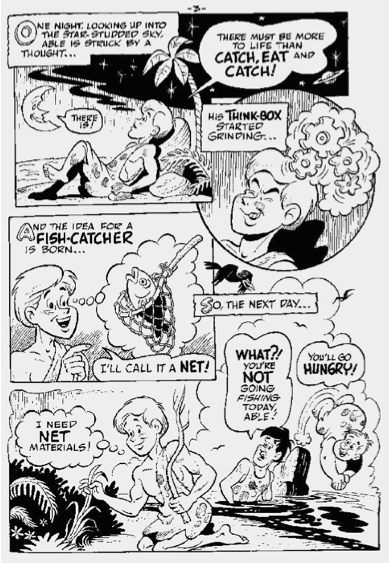 But, Able dreams of “something more.” He’s tired of being poor and wants to improve his living standard somehow. He comes up with the idea of building a net to use to catch fish faster (boost his productivity).