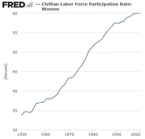 The economist Claudia Goldin has written persuasively about the long-term changes in women’s work over the course of the 20th century. She notes that the soaring rate of women’s labor force participation from the 1950s-1970s is part of a greater, century-long revolution. And it is that revolution that means that there are more and more women who are able to be in an office to begin with.