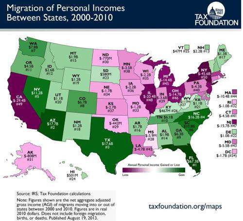 But there’s another form of demographic change that can also have a big impact. Migration patterns can alter the economic vitality of a jurisdiction. I’ve written about the exodus of French entrepreneurs who move to other countries with better tax systems, and the same thing happens with migration between American states.
