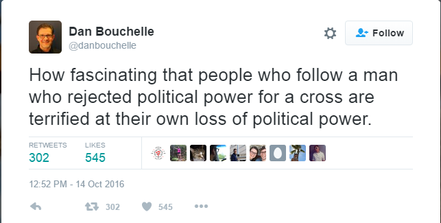 Do you really believe that your purpose in life can only be fulfilled if the “right” person is in office?Can you imagine how weak Jesus would have looked if he had failed to turn water into wine, or failed to multiply the fishes and loaves, or failed to raise Lazarus from the dead, or failed to restore sight to the blind because of some argument like, “I can’t fulfill my mission to usher in the Kingdom of God because these politicians are too corrupt.”