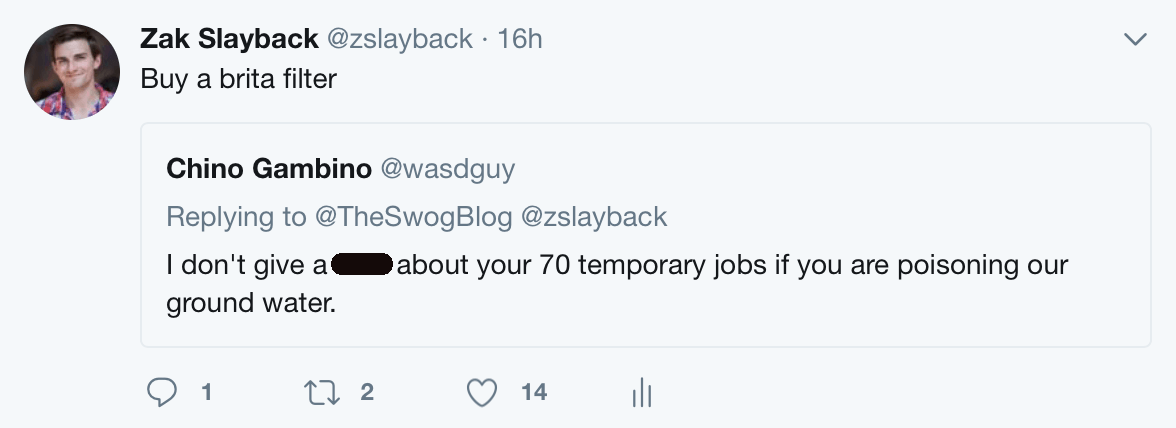 That was my response to somebody on Twitter reacting negatively to a post where I made a point about the economic and personal impact of 70 mining jobs.