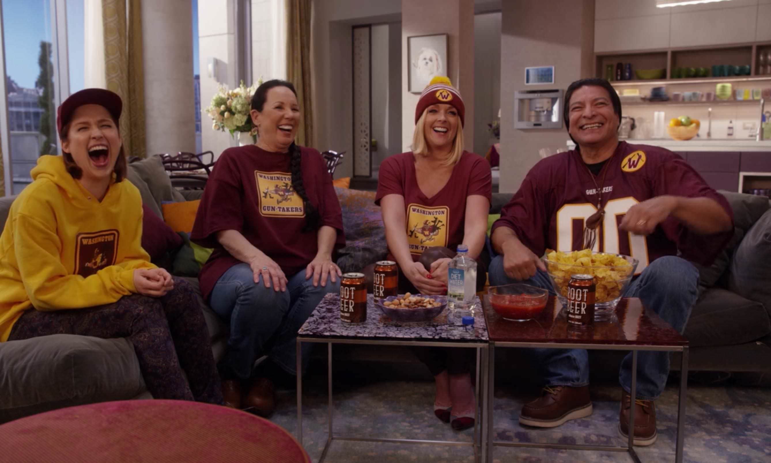While on her way up to an owner’s meeting, Jacqueline runs into her parents who have traveled a great distance and are protesting and chanting “change the name!” She is all too excited to tell them that she is taking the team down from the inside when she notices that the protesters are burning large amounts of Redskins merchandise.