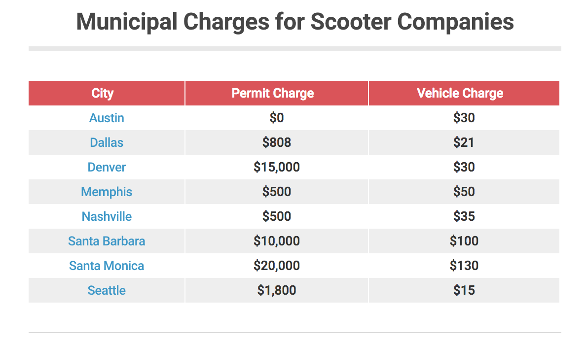 Competition encourages further innovation and lowers prices. Charging high fees to scooter companies disproportionately affects new startups. Dallas has a reasonable charge of $808 for an initial company permit and $21 per vehicle, while Santa Monica charges a steep $20,000 registration fee plus $130 per scooter.