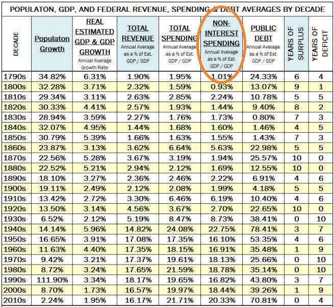 I discussed the Rahn Curve and cited the data showing that the federal government was a very tiny burden for much of America’s history.