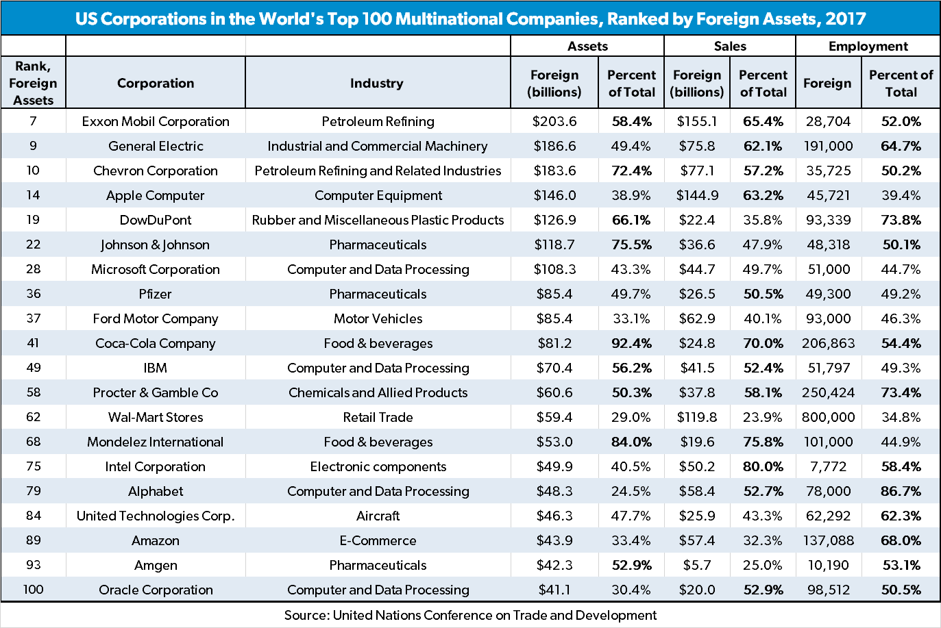 - Many of the US MNCs above have close to half or more than half of their corporate assets (property, plant, and equipment) located outside the US, and some like Coca-Cola (92.4 percent), Mondelez (84 percent), Johnson and Johnson (75 percent), Chevron (72.4 percent), and DowDupont (66.1 percent) have two-thirds or more of their assets overseas.