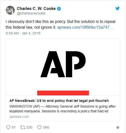 I’m tempted to agree with both sentences. The rule of law is vital, after all, and I definitely don’t like when Sessions uses the Justice Department to hassle people for victimless crimes.