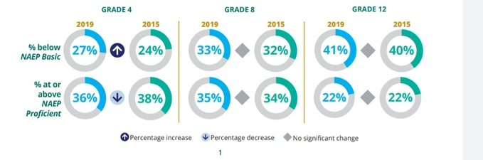 Just 36 percent of 4th graders were at least “proficient” in science in 2019. Meanwhile, only 35 percent of 8th graders were proficient, and, most worryingly, just 22 percent of 12th graders tested at or above a proficient level in science. These numbers are all essentially unchanged or marginally worse than the same figures in 2015, suggesting no improvement or progress has been made on this front.