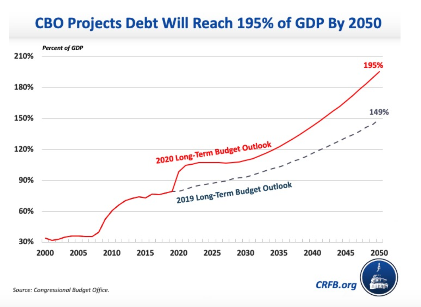 We already knew that the budget deficit will hit a record-breaking $3.3 trillion this year as the federal government continues to run up debt in response to the COVID-19 crisis. Yet a new report from the nonpartisan Congressional Budget Office (CBO) shows that we aren’t just facing a short-term spike in deficits. We’re on an uncontrolled spiral toward perilous and unprecedented levels of debt.
