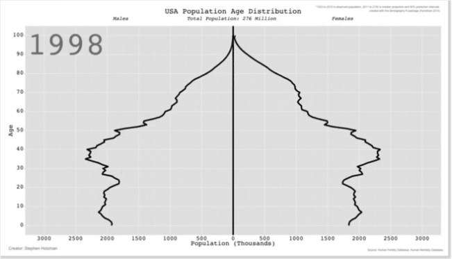 America’s main long-run retirement challenge is our pay-as-you-go Social Security system, which was created back when everyone assumed we would always have a “population pyramid,” meaning relatively few retirees and lots of workers.