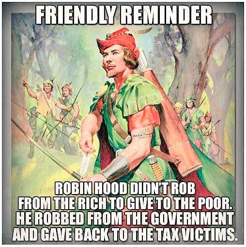 If you read the book or watch the movie starring Errol Flynn, Prince John and the Sheriff of Nottingham were the bad guys because they over-taxed the peasants. Robin Hood was the good guy because he rescued the money from the tax collectors and returned it to the people who earned it.