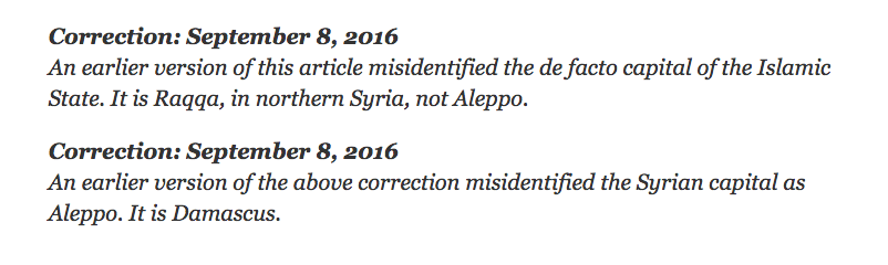 Which is more than I can say for the New York Times, who, in their angst to smear Gary as a dunce, is getting backlash for actually misidentified key Syrian locations themselves, not once, but twice in the same article. And here is the correction the paper was forced to run.