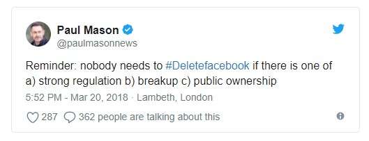 The latest bright idea from Paul Mason is that Facebook must be regulated or changed in some manner to make darn sure it does what Paul Mason wants Facebook to be doing.