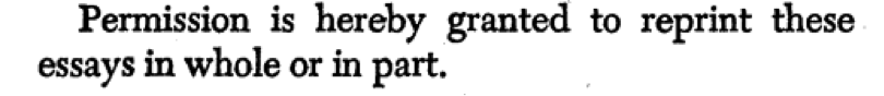 If you look at printed books by Leonard Read or any issue of The Freeman all the way back to the 1950s, you will find this note: “Permission is hereby granted to reprint these essays in whole or in part.” Here is the way the note looked to readers: