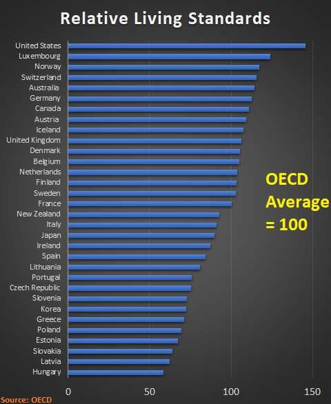 And because of the relationship between policy and prosperity, this means that Americans tend to have much higher living standards than their counterparts in other nations. Even when compared to people in other developed countries.